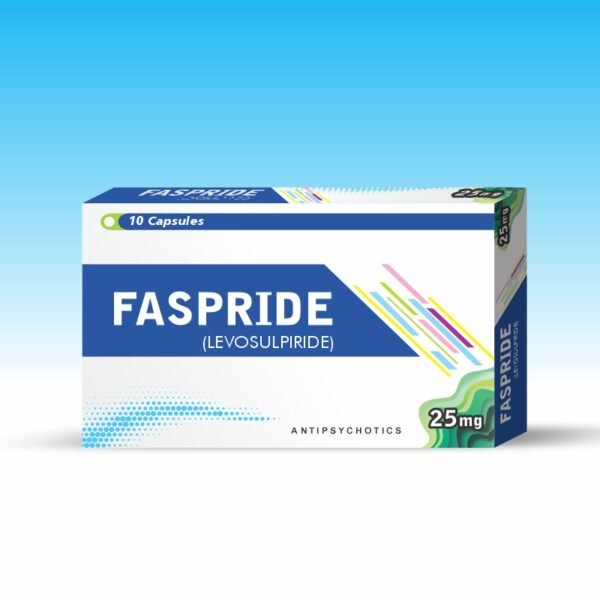 Faspride 25mg Capsules contain Levosulpiride, a substituted benzamide antipsychotic and prokinetic agent. It is primarily used for the treatment of functional dyspepsia, gastroesophageal reflux disease (GERD), irritable bowel syndrome (IBS), and certain psychiatric disorders such as depression with somatic symptoms and schizophrenia. Levosulpiride works by selectively blocking dopamine D2 receptors in both the central nervous system and the gastrointestinal tract, resulting in improved GI motility and mood regulation.